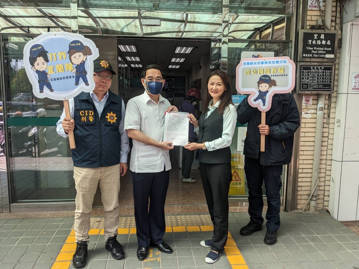 這一天宜蘭警分局分局長余中義親自率領著偵查隊長以及轄區派出所所長和詐欺業務承辦人,到宜蘭小東路農會、渭水路郵局還有縣府郵局,加強「警銀合作攔阻詐騙的工作聯繫」。