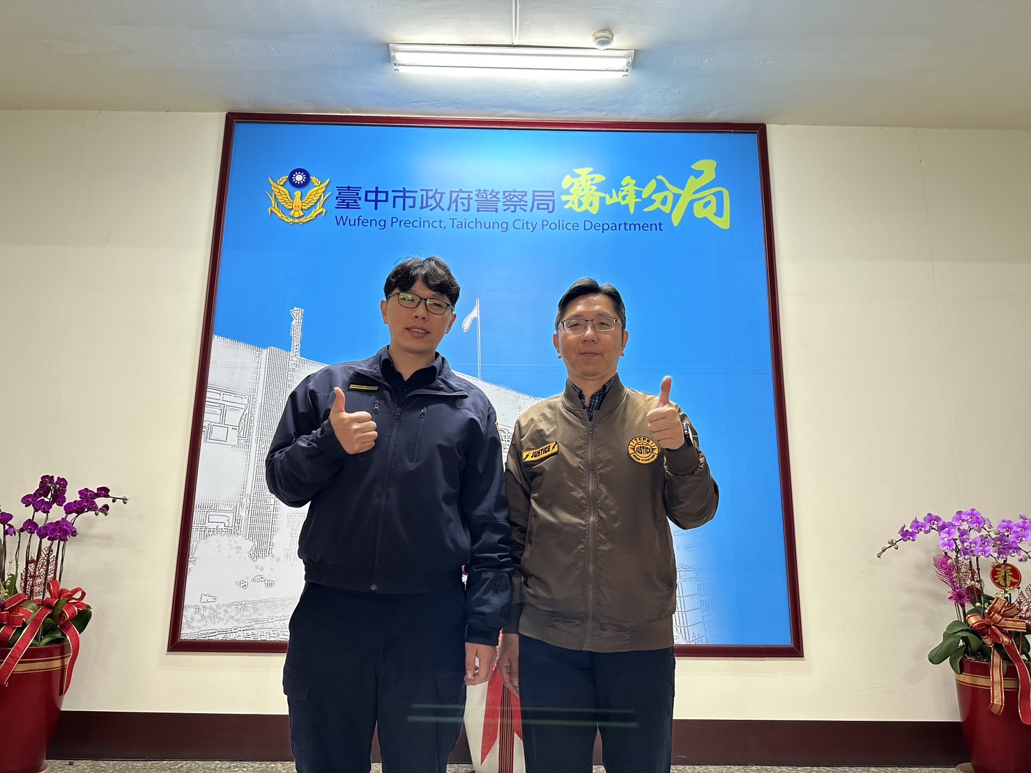 在一旁見證所長奔波過程的石原安警員說,雖然張所長從警時間11年,在警界其實並不算長,但熱心程度絕對不落人後,霧峰警分局陳祥麟分局長表示,警局派出所就如同便利商店般深入鄉里間,在民眾需要時能提供最及時的幫助,像夜間在派出所都留有一盞燈,當民眾有需要時就會化身為庇護所。張逸格所長說,警察不僅是執法者,也是社會福利工作者,透過勤區查察時深耕轄區,了解居民的大小事,也主動發掘弱勢,能夠成為手心向下協助民眾的人,讓這身警察制服穿在身上更有榮譽和成就感。