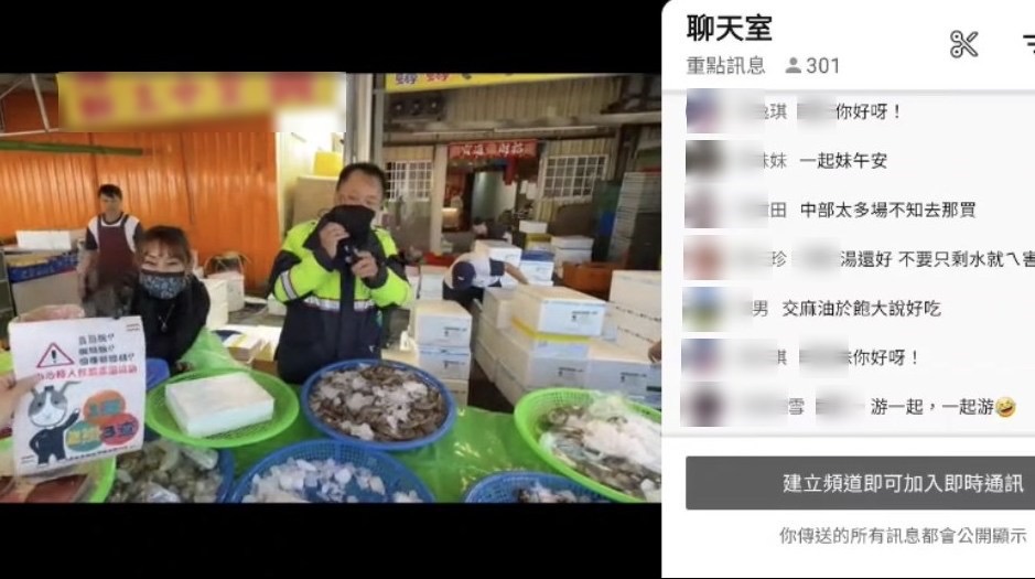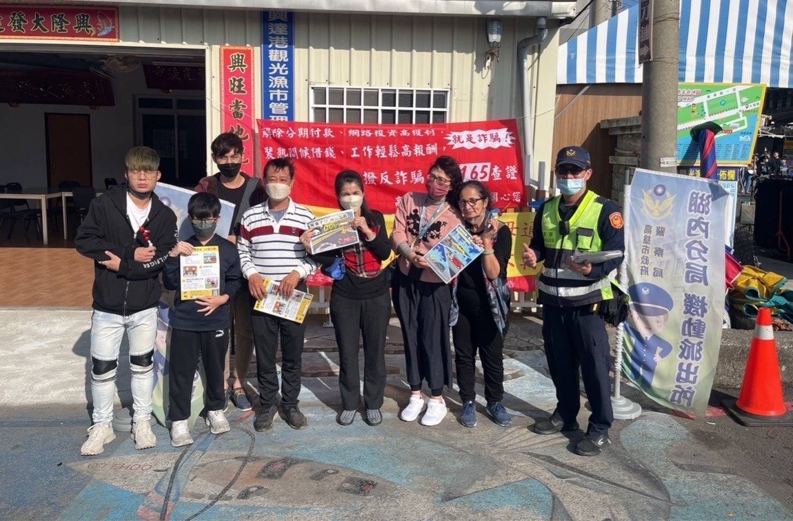 高雄市警局湖內分局全體總動員,前往轄內興達觀光魚市及情人碼頭等熱門旅遊景點進行反詐騙宣導,市場內知名網紅攤商直播叫賣海鮮商品,員警趁機加入,在場民眾看見員警風趣接地氣,以叫賣方式反詐騙宣導,反應相當熱烈。