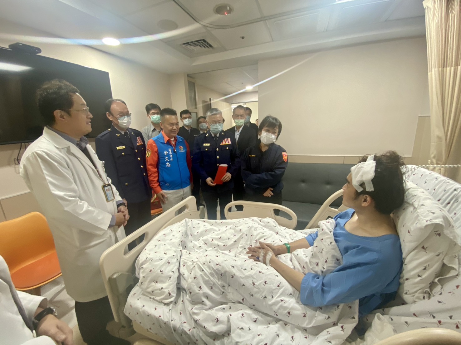劉世芳部長隨後也前往部立苗栗醫院慰問受傷的朱姓員警,院方表示,員警目前狀況穩定,已從加護病房轉入一般病房治療;劉部長強調,歲末年終雖有憾事,但在警民合作下及時壓制,也驗證臺灣的治安良好,感謝全體警察的付出。