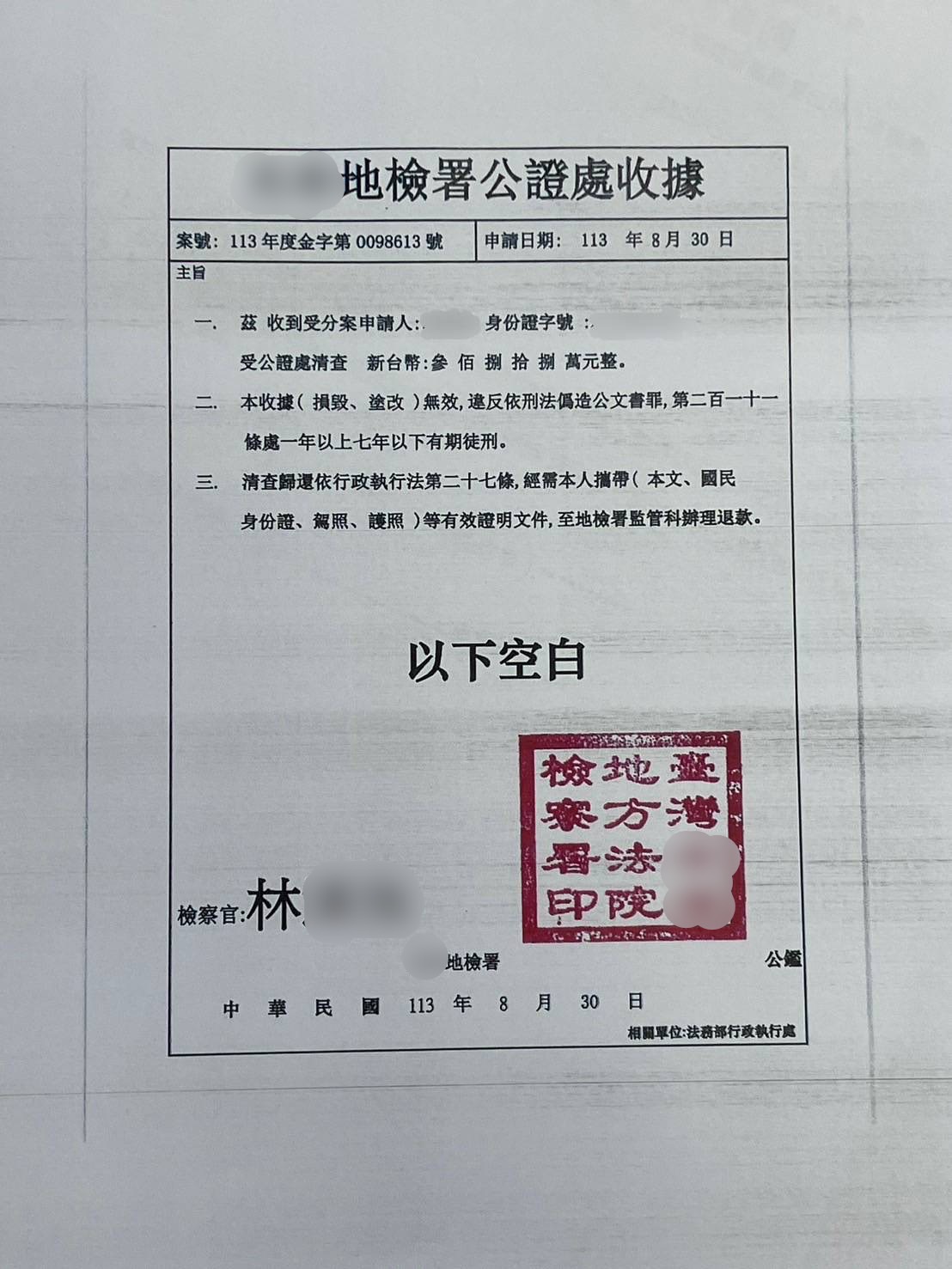 臺北市大安警分局羅斯福路派出所員警擔服巡邏勤務,行經新生南路三段19巷公園時,見到一名男子將大型提袋轉交給一名戴鴨舌帽及口罩的男子,且同時又有另名男子在一旁監控把風,員警見狀察覺有異立即主動上前盤查。經查發現陳姓被害人接獲自稱檢察官來電表示男子涉嫌販毒、洗錢等案件,帳戶內現金需要監管,要求被害人提領新台幣812萬元至指定地點面交。羅斯福路派出所長陳韋勲表示,警方一聽馬上就判定此為典型假檢警詐騙手法,將李姓、林姓車手當場逮捕。