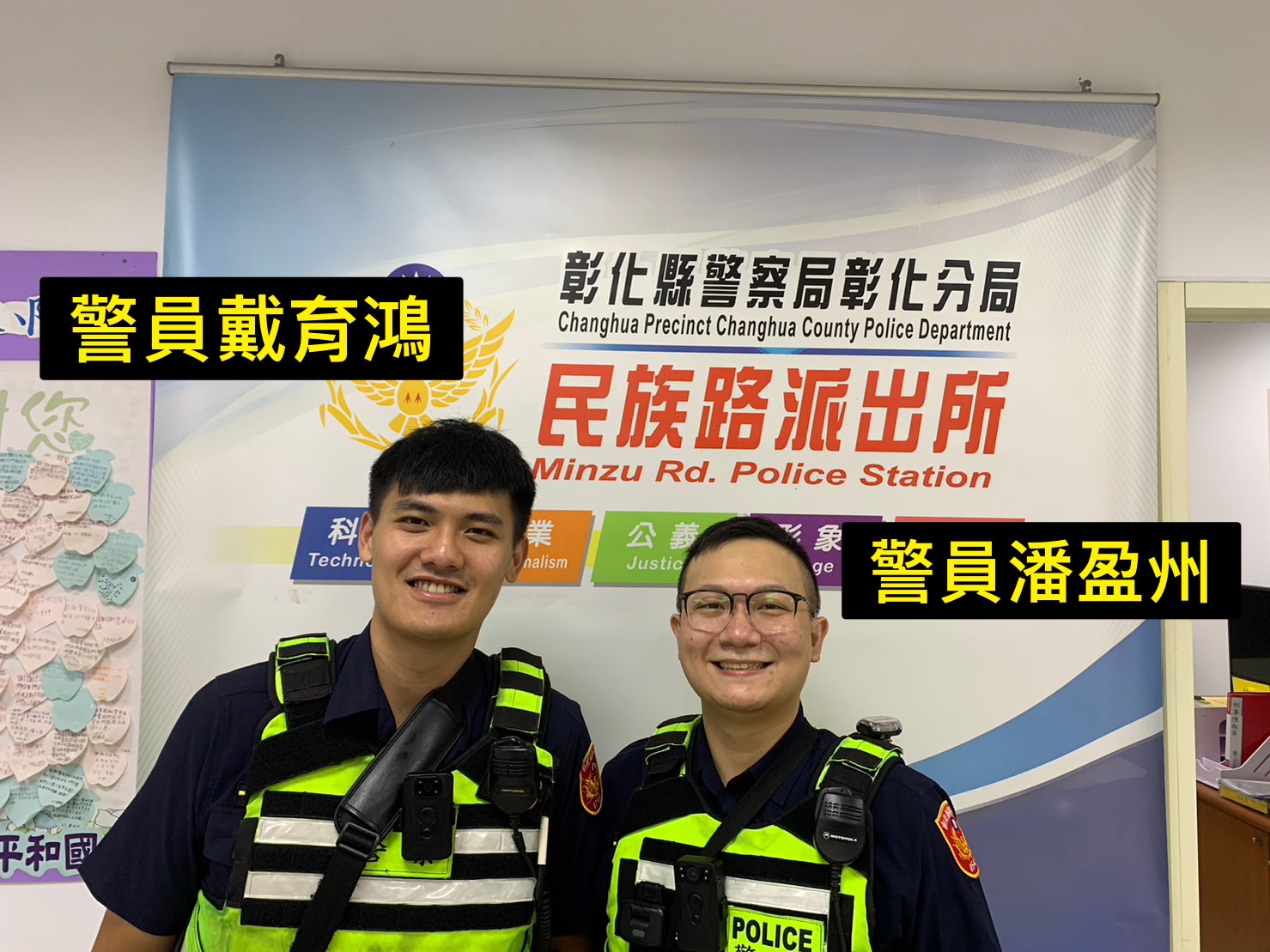 彰化警分局民族路派出所警員潘盈州、戴育鴻執行勤務,獲報有迷失老人,立即趕赴南門市場,發現老婦人說話不清、語意不詳,仔細一聽,聽到婦人詢問,這裡是臺北嗎?