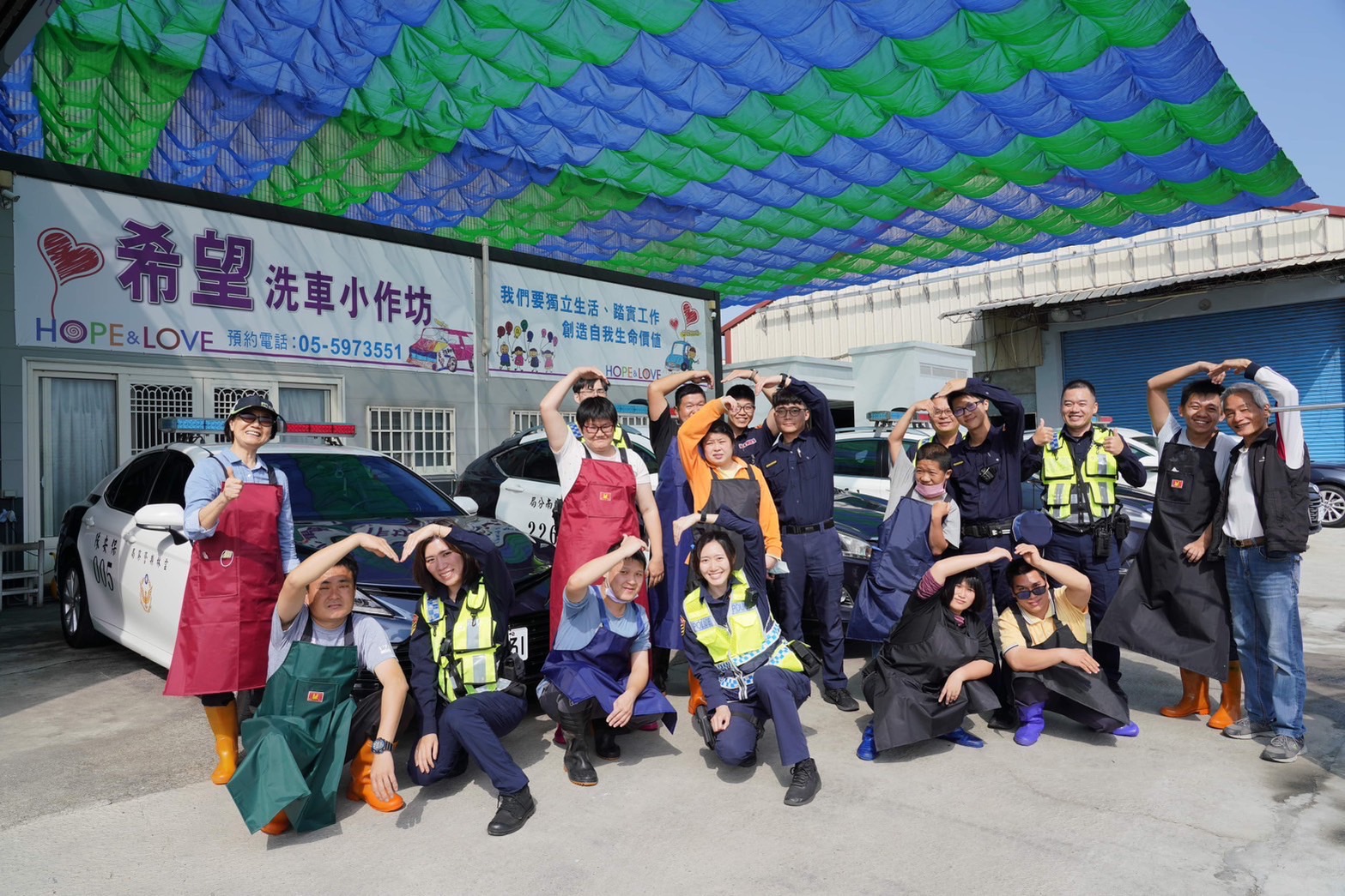 雲林縣警察局秉持身為人民保母,愛心不落人後的精神,發起「雲警挺公益 警車洗車趣活動」,出動5部警用巡邏車,到斗南鎮希望工場近期新設立之洗車場,用行動支持弱勢族群朋友,讓雲林波麗士的關懷與愛散播出去。