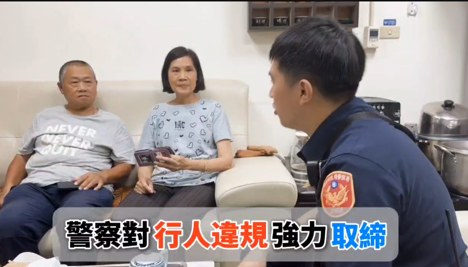 一名駕駛開車行經臺中市北區崇德路和梅亭街口,依照號誌綠燈行駛,斑馬線上卻突然冒出一名婦人牽著狗亂竄,讓駕駛緊急煞停、嚇出一聲冷汗,後續駕駛將影片PO上網引發網友熱議,臺中市第二警分局也特別製作交通宣導短片,藉由高齡者視角,提醒民眾反思行人三寶行為害人又害己,交通組莊靜宜巡官表示根據交通部道安資訊平台,臺中市113年1至3月行人死亡交通事故共計17件,其中10件係因『行人違規』導致,高達58.8%,主要肇因以行人未依規定穿越車道,以及行人闖紅燈為主。