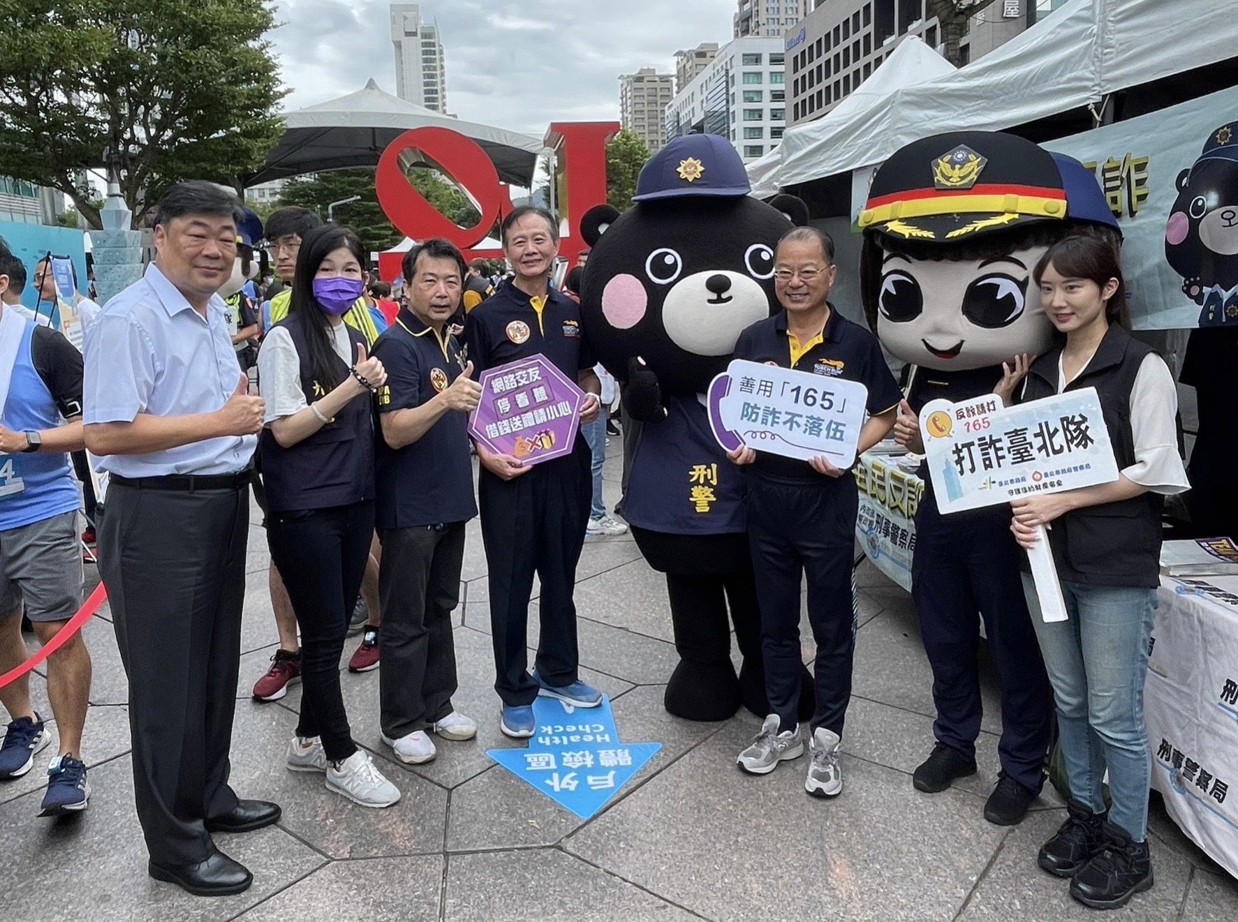 黃明昭署長在終點線迎接完賽選手,給予喝采,並頒發前三名菁英警察完賽證書。警政署與刑事局也在活動現場設置反毒反詐犯罪預防宣導攤位,刑事Bear與民眾互動合影;並由除暴特勤隊展示精良武器及裝備,透過解說和分享,讓民眾感受警方打擊不法的決心。