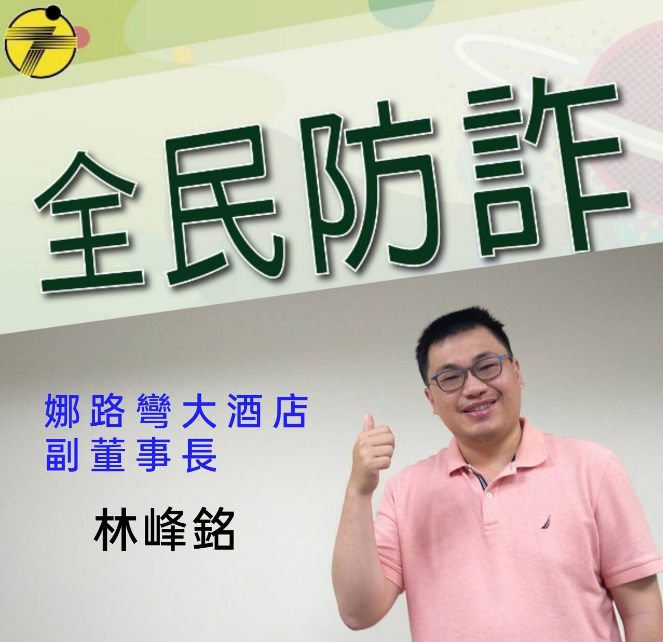 臺東娜路彎大酒店副董事長林峰銘知道警廣要錄製百工百業代言「全民防詐」宣導影片時,二話不說馬上答應警廣臺東分臺主持人的邀約,並積極會同該飯店行政同仁協助影片拍攝,希望讓更多鄉親懂得如何保護自己,免於受害。他以防猜猜我是誰詐騙做為宣導主題: