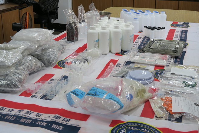 保安警察第三總隊第二大隊破獲跨國運作的「喪屍煙彈」分裝工廠案,攔截超過一公斤的二級毒品依托咪酯原料,可製造超過一萬顆「喪屍菸彈」。