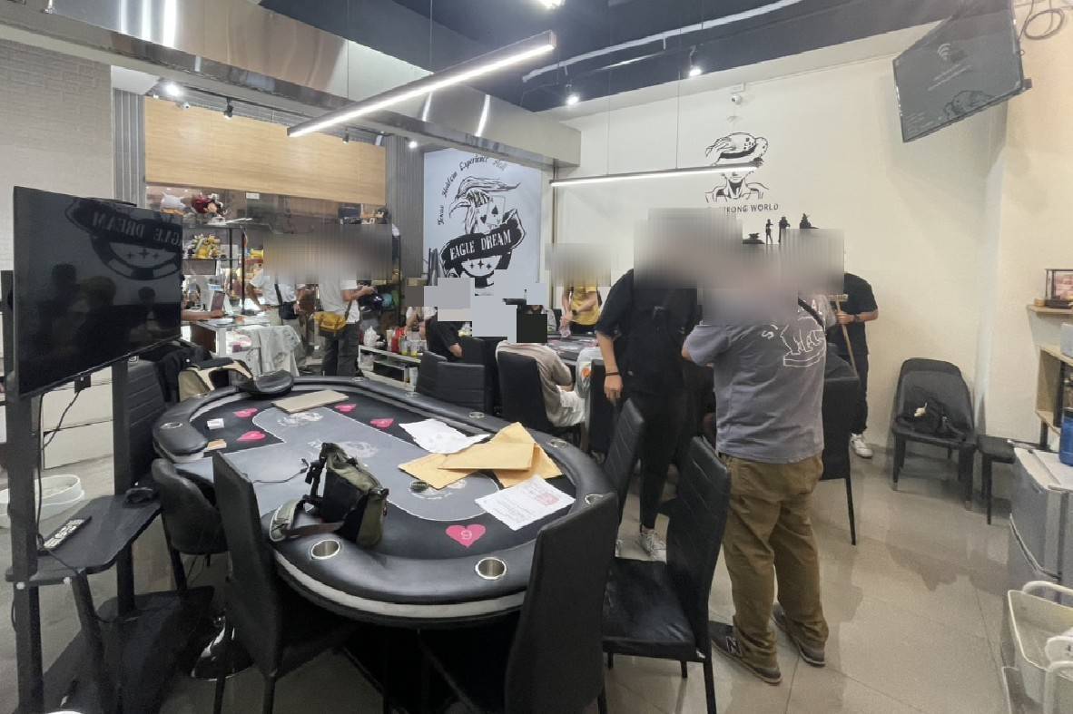 第六警分局共出動24名警力,直搗西屯區一處德州撲克體驗館,當時現場正有賭客神情緊繃比拚牌技,桌上籌碼堆成小山,卻在警方進入喝斥臨檢的那一刻全數停擺,牌桌瞬間變成證物桌。
