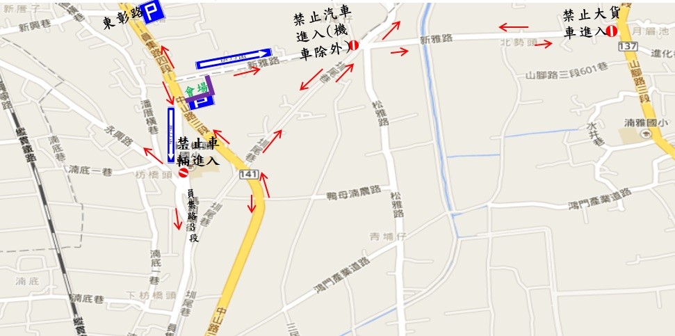 四、 管制期間:禁止大貨車由山腳路進入新雅路。