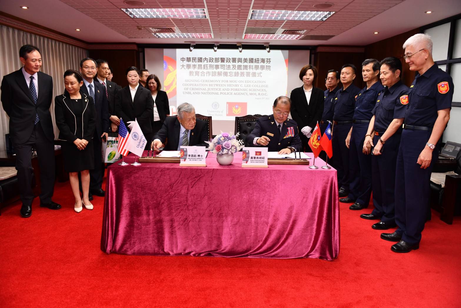 持續推動精進優秀員警專業技能,警政署在8月25號與美國紐海芬大學李昌鈺刑事司法及鑑識科學學院續簽教育合作諒解備忘錄,由警政署長黃明昭和李昌鈺博士代表簽署,為警政署推動國際警察教育合作再創全新里程碑。