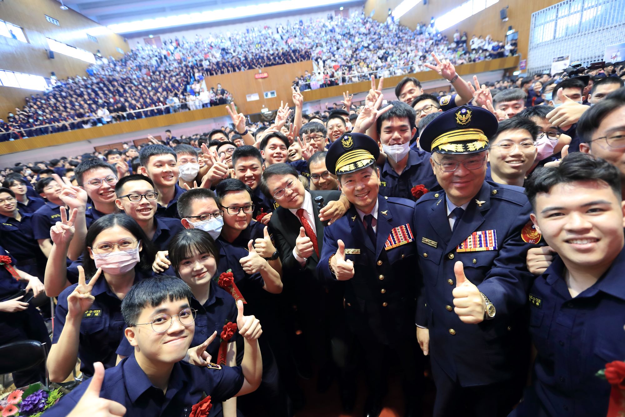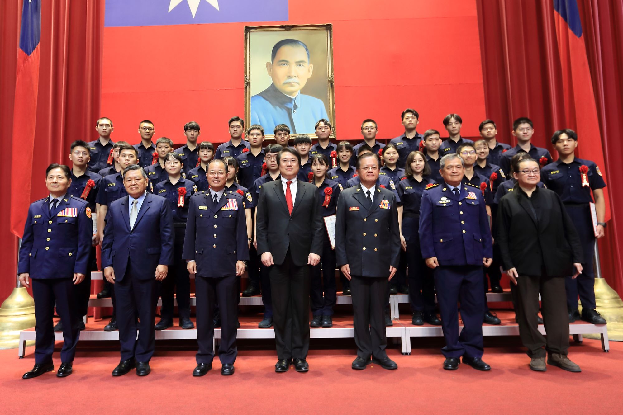 警政署長黃明昭及消防署長蕭煥章、海巡署艦隊分署楊朝卿副分署長也在現場祝福畢業生,加入執法人員的行列。典禮最後,部長衷心感謝所有辛勤奉獻的老師教官及在場家長支持,期許同學「今日以警專為榮,明日警專以各位為榮」,祝福畢業學員一帆風順、鵬程萬里。