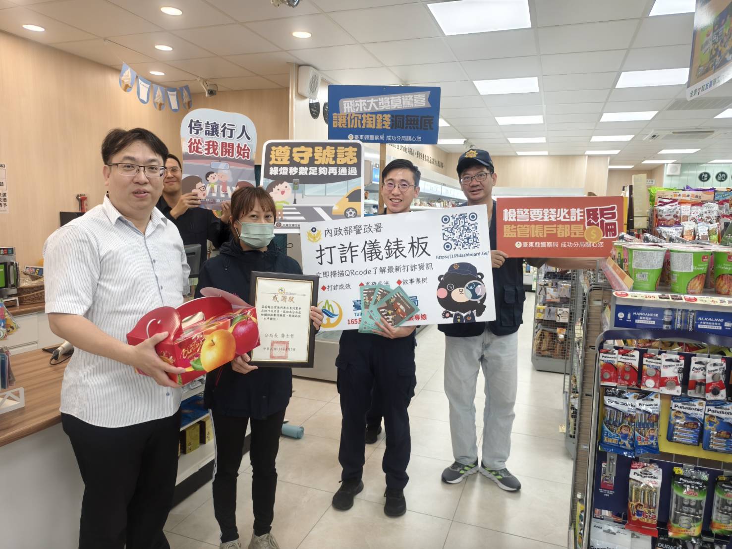 成功分局分局長龔士哲親赴超商頒發感謝狀及水果禮盒致謝。成功警分局呼籲,對於網路未曾謀面之陌生人要求投資或是購買遊戲點數通常是詐騙,民眾遇有任何疑似詐騙狀況,請先撥打165或110查證,確保自身財產安全。