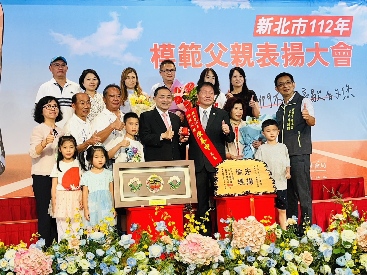父親節將至,新北市政府下午舉辦「112年度模範父親表揚大會」,會中共有55位各區推舉當選的模範父親,在親友、家人的陪同下出席,現場氣氛熱烈溫馨。