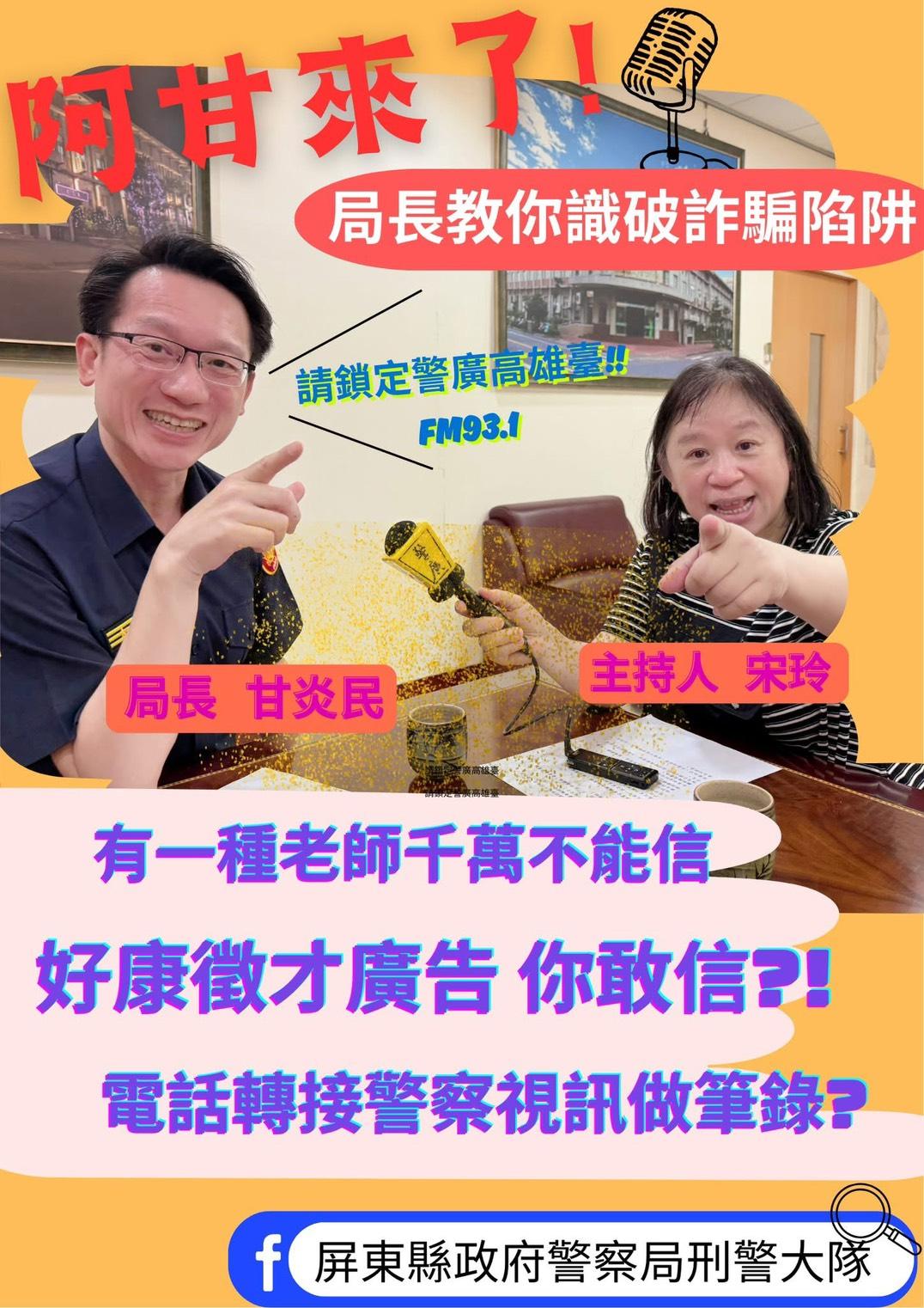 教師節快到了!屏東縣政府警察局長甘炎民除了祝福老師們快樂外,也提醒民眾,小心網路上聲稱可以帶大家賺錢的投資老師,以免變成詐騙集團的提款機。
