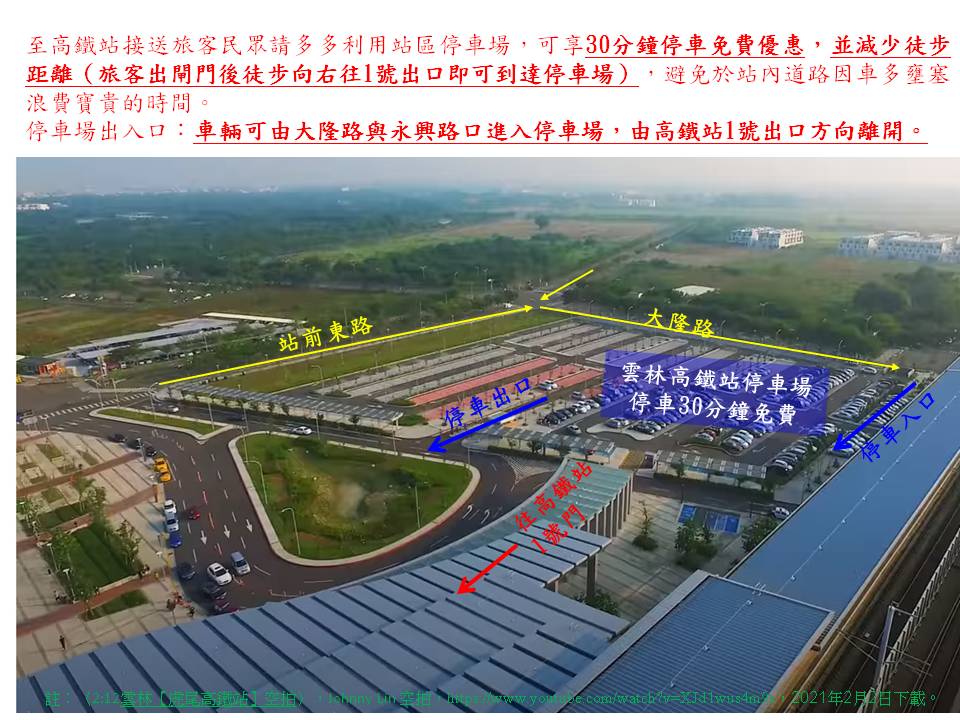 高鐵雲林站於7號下午4點到晚上10點,以及8號到10號每天早上8點到晚上10點實施改道措施,民眾可多利用大隆路與永興路口的停車場,享有30分鐘免費優惠。而8號與9號上午5點至中午12點,封閉國1西螺南向入口;9號及10號中午12點至晚上9點,封閉國1虎尾北向入口。針對風景區易車多路段,雲林縣警察局交通隊分隊長鄧順元表示,交通壅塞的一大原因是違規併排停車、或是在停車場出入口等待,所以有時候其實並非真的車多,而是用路習慣導致,因此雲林縣警察局呼籲,若連假期間風景區周邊停車場都已滿位,可先選擇繞去其他路段找尋停車位或先至附近景點,請勿在路口持續逗留。