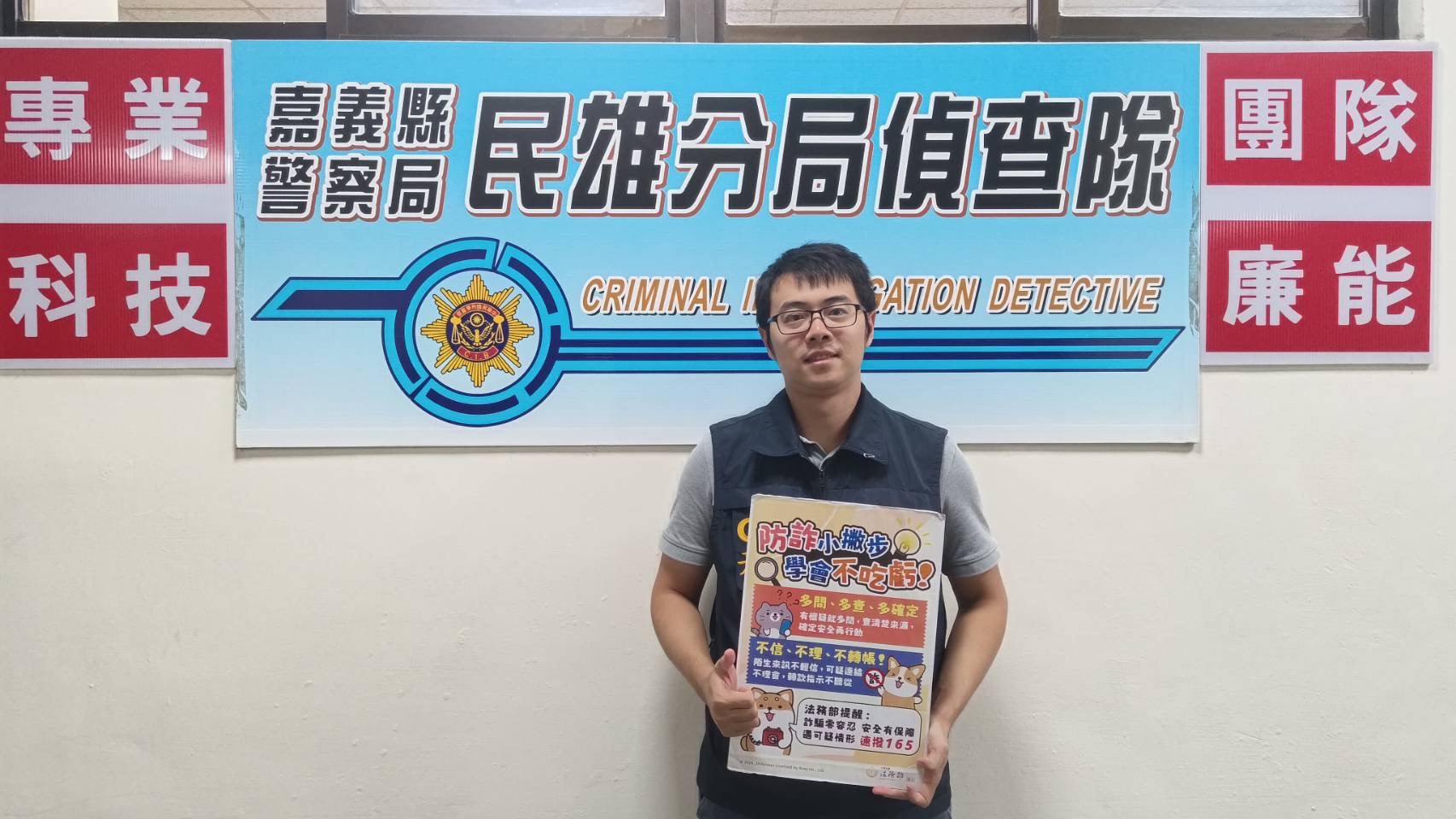 詐騙集團常用的「假法院」、「假警察」等套路,利用「偵查不公開」、「監管帳戶」等專業用詞,逼真呈現犯罪手法,提醒民眾:這些是每天都在發生的詐騙事,嘉義縣警察局民雄分局偵查隊朱柏叡副隊長說:不會私下告知正在偵辦你,也不會要求你「把錢轉到監管帳戶」,若提及「偵查不公開,家人也不可分享」就是詐欺的典型徵兆,請立即至鄰近派出所諮詢,或是撥打165反詐騙專線;為了增添「真實感」,詐騙集團還會製作偽造的「法院公文」,要求民眾到超商收取傳真,讓假戲演得更逼真,詐騙集團利用的就是人們的恐慌與信任,一旦被關鍵字嚇住,就容易失去判斷力,呼籲全民一起提高警覺,才能讓詐騙無所遁形!