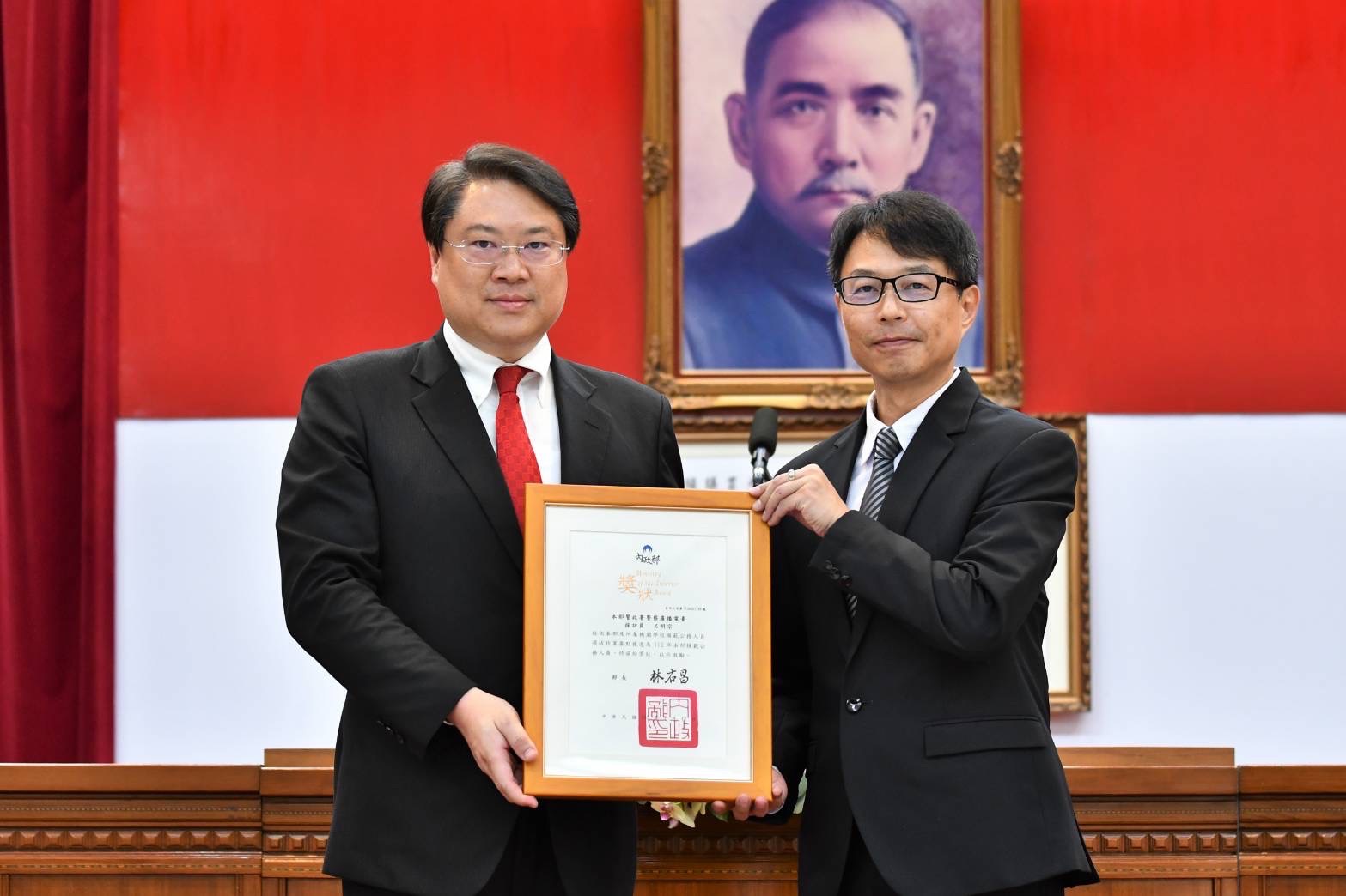 內政部長林右昌頒獎表揚模範公務人員,除了肯定獲獎者的優異表現,也期勉所有同仁都能以當選人為表率,推動公務時多與社會溝通,讓民眾認同內政部政策,突破過去的困境與限制,進一步提升國家、社會競爭力。