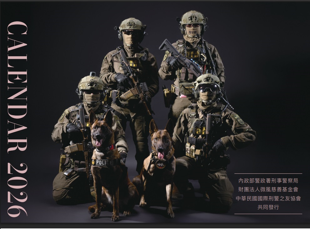 刑事警察局與微風慈善基金會、中華民國國際刑警之友協會再度攜手,推出2026年公益寫真月曆,今年以《警警相依》為主題,由時尚攝影大師林炳存掌鏡,記錄刑警與警犬在緝毒、偵爆、搜索與維安任務中的默契與專業。