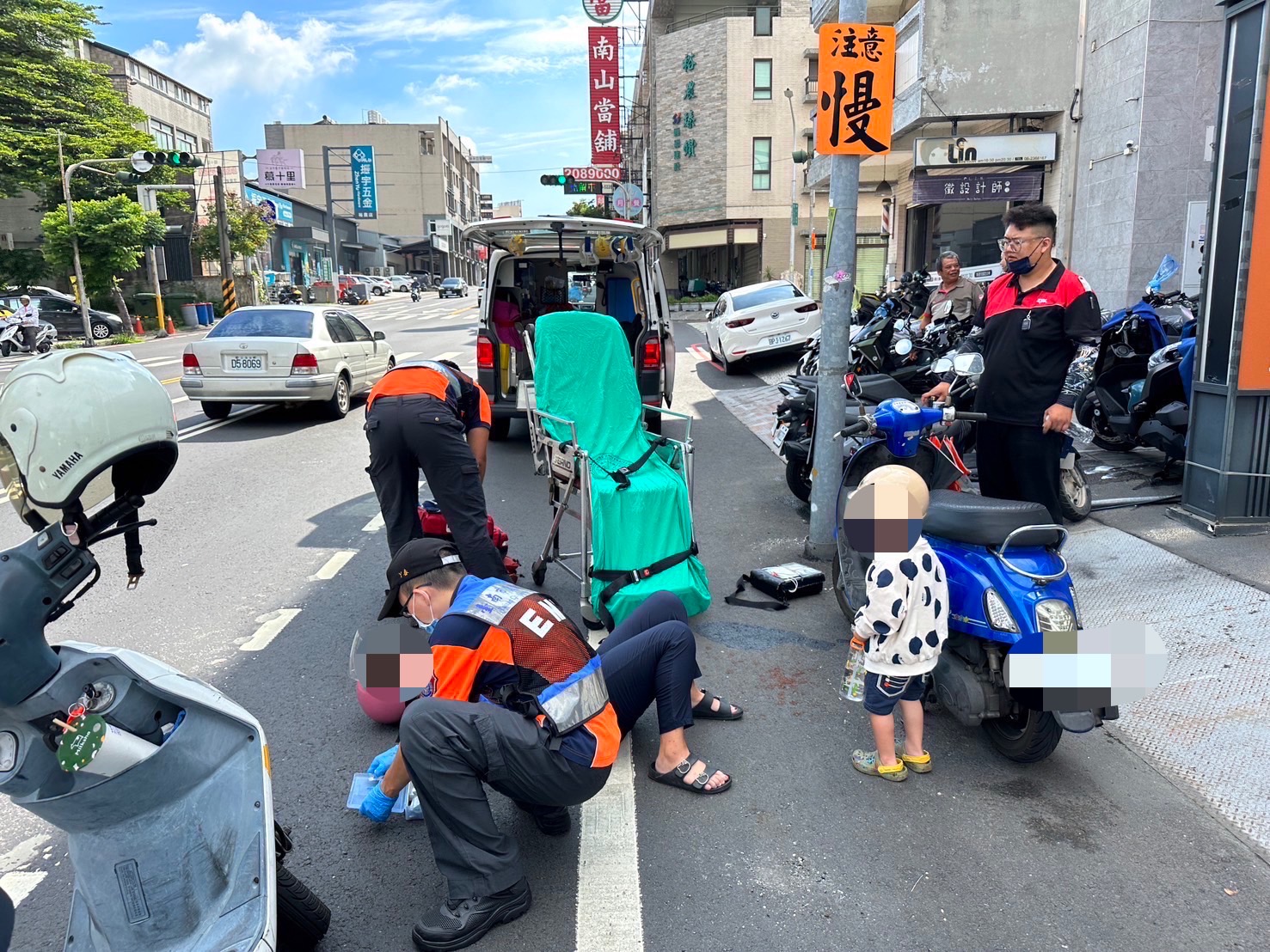 看見前方女騎士倒地,巡邏經過的永康分局復興所警員陳朝偉、楊皓宇員警,立刻緊急煞停趨前關心。鄭姓女騎士身懷六甲,疑因沒吃早餐血糖過低頭暈目眩,騎機車載小孩途人車倒地,幸好遇上巡邏員警。警員陳朝偉老婆也正在孕期中,今年準備升格當人父,面對孕婦摔倒感同身受不敢輕忽大意,立即請楊皓宇先協助疏導交通,避免人車追撞,同時通報救護人員到場。救護人員到場初步檢視女子並無大礙,送醫做進一步的檢查。之後一家人帶著蛋糕現身派出所,感謝永康暖警及時伸出援手。