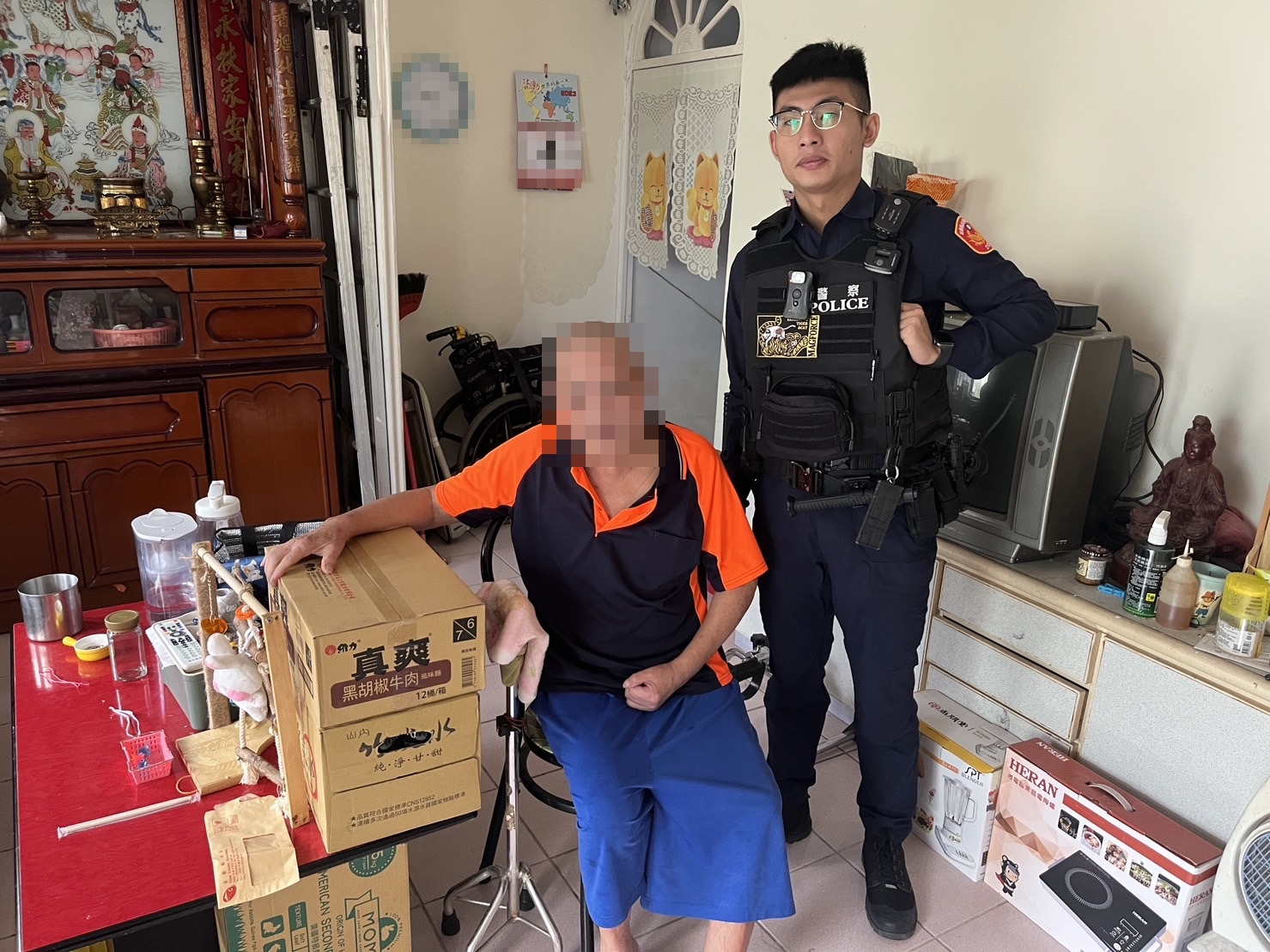 宜蘭縣冬山鄉有民眾中風,家境困苦,羅東警分局員警執行勤區訪查時發現,立即伸出援手,濟助物資,即時幫助民眾度過難關。