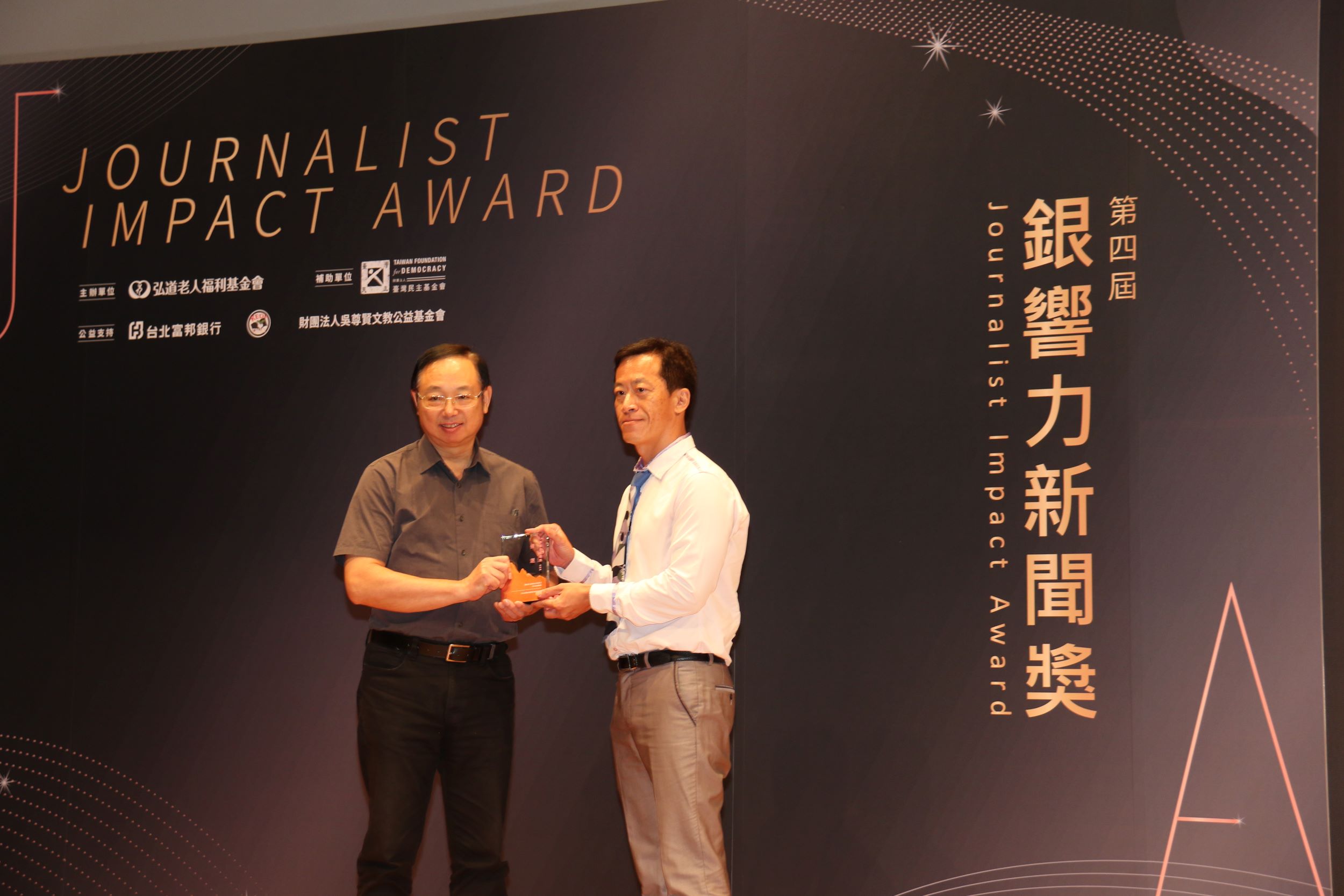 生動地用真實對話串起長輩遭詐騙及現場勸阻的情境,並剖析詐騙集團手法,也提供強化識詐能力的具體管道,完整清晰的報導獲得第四屆「銀響力新聞獎」廣播及網路音頻類即時新聞獎優選的肯定,警廣記者黃俊偉領獎時特別感謝警廣游永中總臺長在上任第一天就親臨頒獎典禮現場給予支持鼓勵,也呼籲大家關心銀髮族遭詐騙的議題。