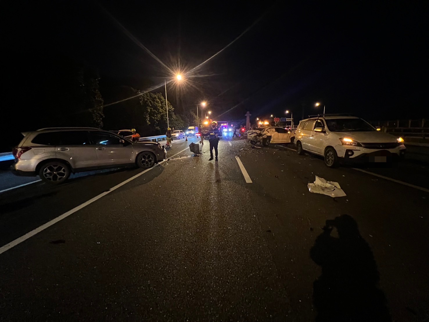 國道 5 號南下路段發生兩車碰撞後因為沒有及時撤離,4分鐘後再遭到後方車輛追撞。警方藉此呼籲駕駛,掌握事故排除原則,避免在高速路段成為二次事故的受害者,守護自身與後方車流的安全。