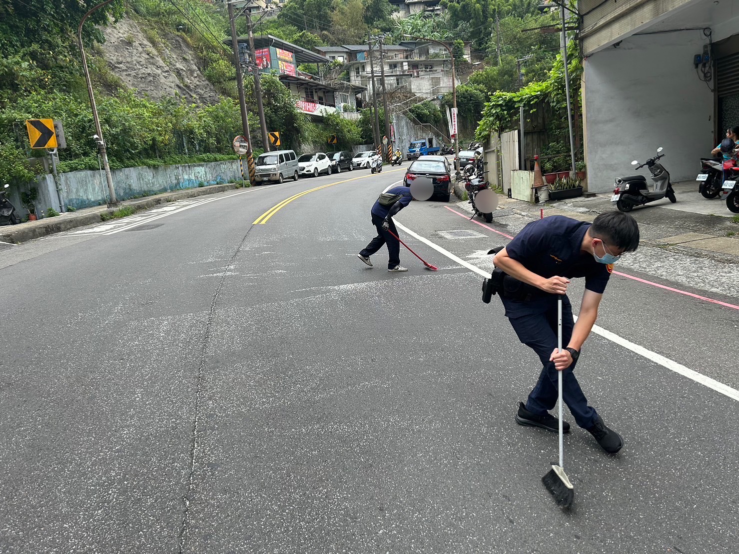 基隆市安樂區安一路路面突然出現大量白米,熱心民眾向警方借掃具清掃,警方與民眾聯手將路面白米清除,共同維護交通安全。