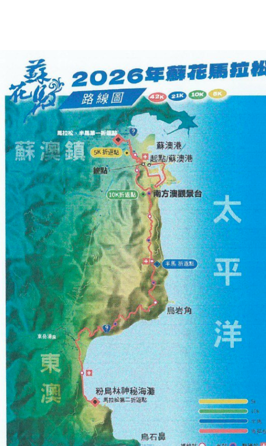 「2026 蘇花馬拉松」即將在 3 月 1 日登場,台 9 丁線舊蘇花公路蘇澳到東澳段將全線封閉。當天白牌機車及油罐車等車輛,將由專人引導「改走蘇花改」通行。請用路人務必掌握集結時間,配合交管指揮。